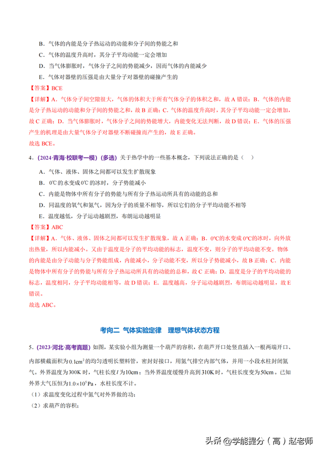 高考物理热学实验专项(高考物理热学双活塞弹簧)