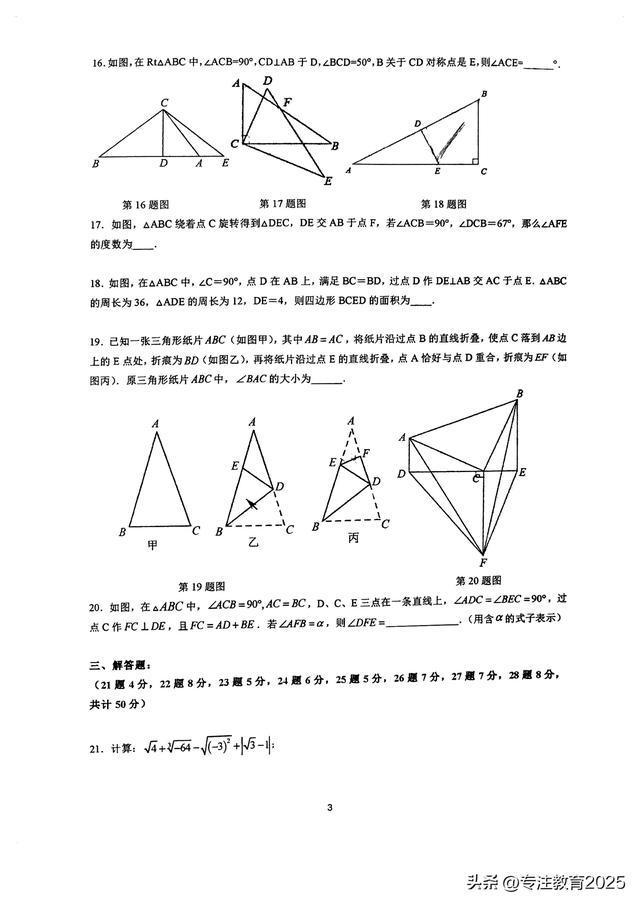 5、2025年福建省秋季新八年级开学摸底考数学语文英语物理生物地理历史试卷及答案解析!后台回复1领取更多福建中考学习。