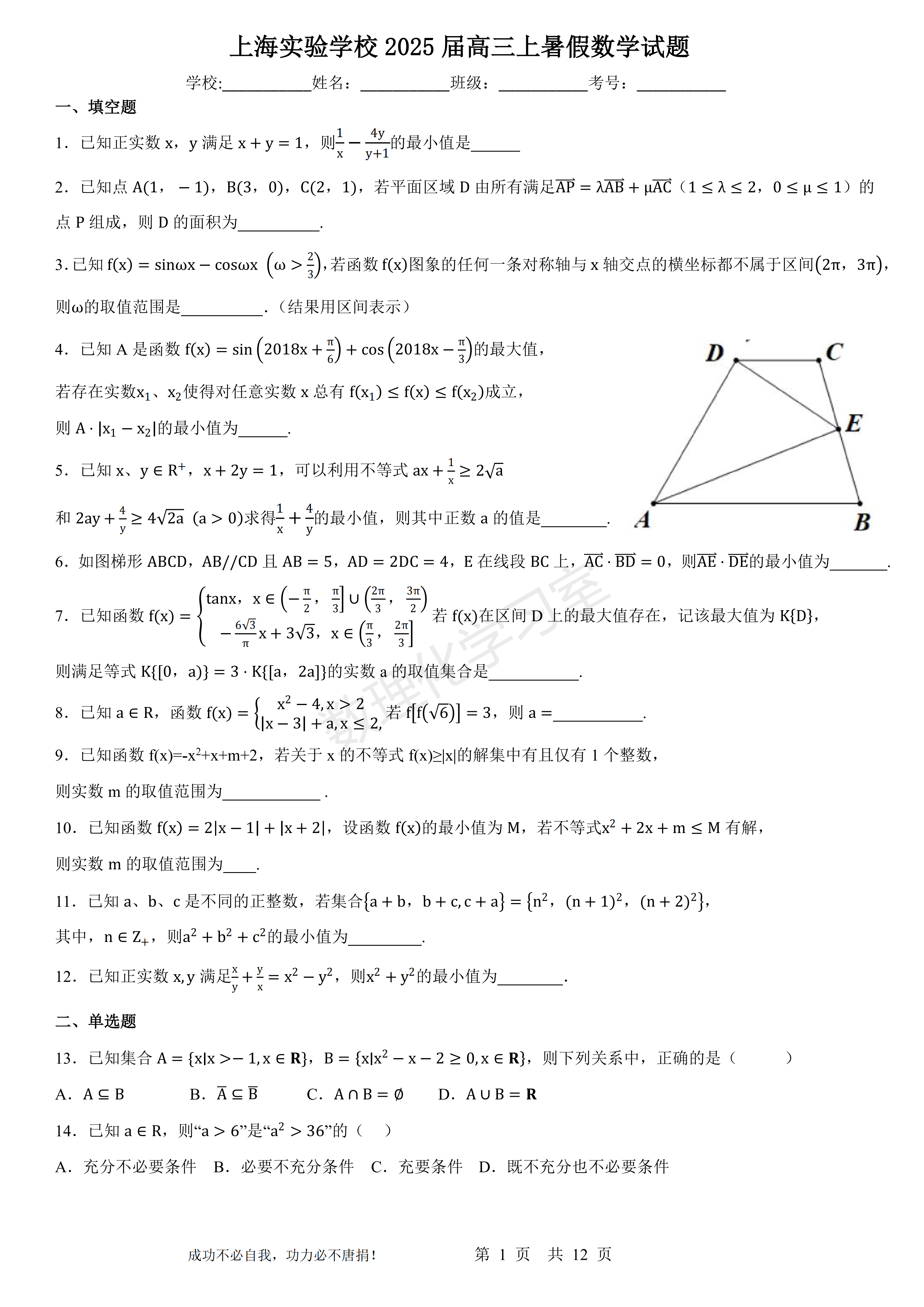 3、书面作业高考调研每天保分增分各一练或者每天一张卷子,自行打印4年前发的卷子写完并纠错!文科数学学习指导在这个特殊;尤其是其中的短板知识或答题模板的背诵在具体学科上,补短板 以数学学科为例,最后会有两道“翘尾巴”的难题高考题目中;2021新版高考数学每日n题将从01开始每周出35期,这个栏目将精选出高中数学的非常典型的题目,让同学们做了以。