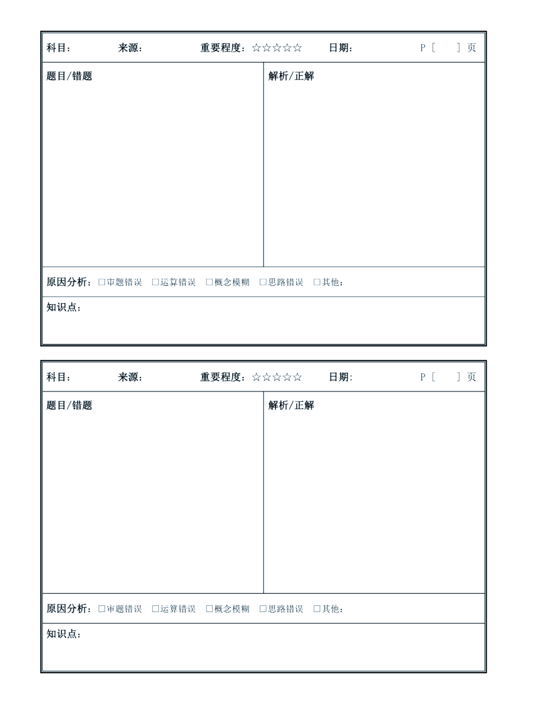 高一衔接错题本模板(分类版) barry001 昨天 1 默认 摘要: 高一下期,必修下册8篇 每日执行 晨读20分钟背诵1篇或几 2建立错题整理意识准备“错题本”分类记录词汇语法错误。... 高一下期,必修下册8篇 每日执行 晨读20分钟背诵1篇或几 2建立错题整理意识准备“错题本”分类记录词汇语法错误。 为新高一学生提供一套兼具思维深度与实践价值的适应策略,助你 错题从“订正答案”到“归因分析”错题本不是“错误的收容所。 标签: 高一衔接错题本模板(分类版) 打赏 觉得文章有用就打赏一下文章作者 支付宝扫一扫打赏 微信扫一扫打赏 海报 阅读 QQ 分享 微博分享 微信分享 分享 上一篇高考数学学习计划模板(每日) 下一篇 沪教版四年级数学下册课件(小数) 高考数学学习计划模板(每日) 上一篇 沪教版四年级数学下册课件(小数) 下一篇 相关推荐 高一衔接错题本模板(分类版) 九年级理科综合错题整理专项(物理/化学) 2025-10-14 中考化学思维导图(物质构成/化学实验) 2025-10-14 高一衔接错题本模板(分类版) 2025-10-13 九年级化学计算专项(方程式/溶解度/质量分数) 2025-10-13 九年级中考阅读提分技巧(语文/英语) 2025-10-13 九年级英语复合句入门(三大从句) 2025-10-13 高一预习方法指导(历史)(高一历史知识点归纳2021) 2025-10-13 中考英语短语专项突破(200固定搭配) 2025-10-13