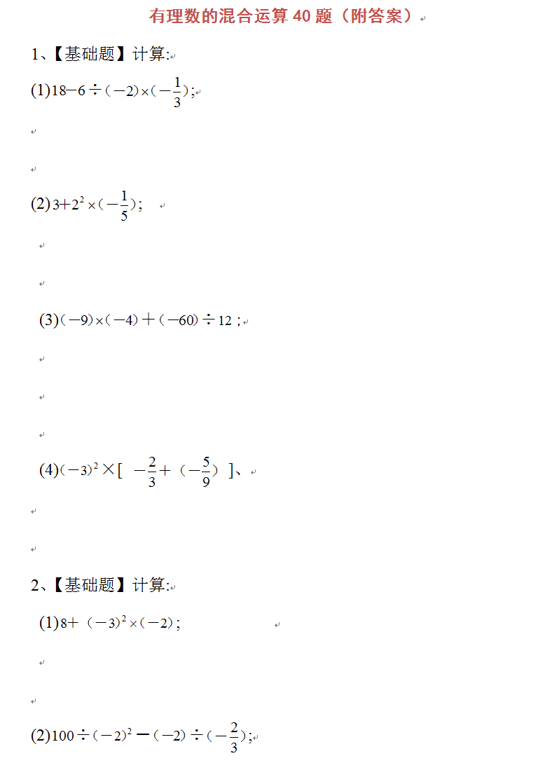 “打基础”我带过太多孩子,小学跳过总复习去学初一,结果初一有理数刚及格,初二物理跟不上,初三总复习直接崩盘 不是孩;今天辅导君为大家整理了七年级上册数学有理数的混合运算练习题 2022年中考数学基础知识及公式大全,初一到初三都使用!可打印。