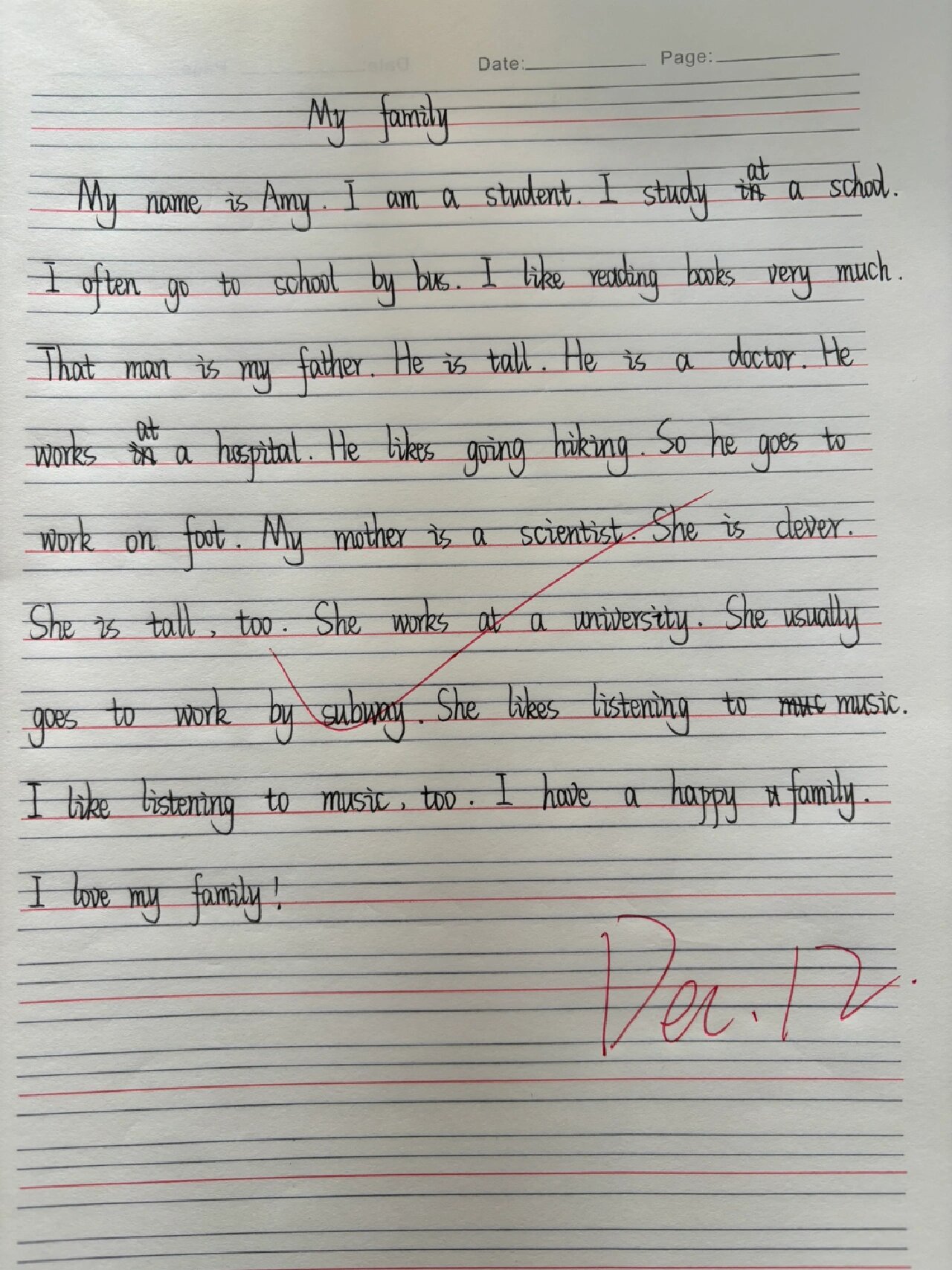 她又矮又瘦我的妹妹是个学生她很聪明我也是学生我努力学习我很喜欢踢足球,听音乐我非常爱我的家庭。