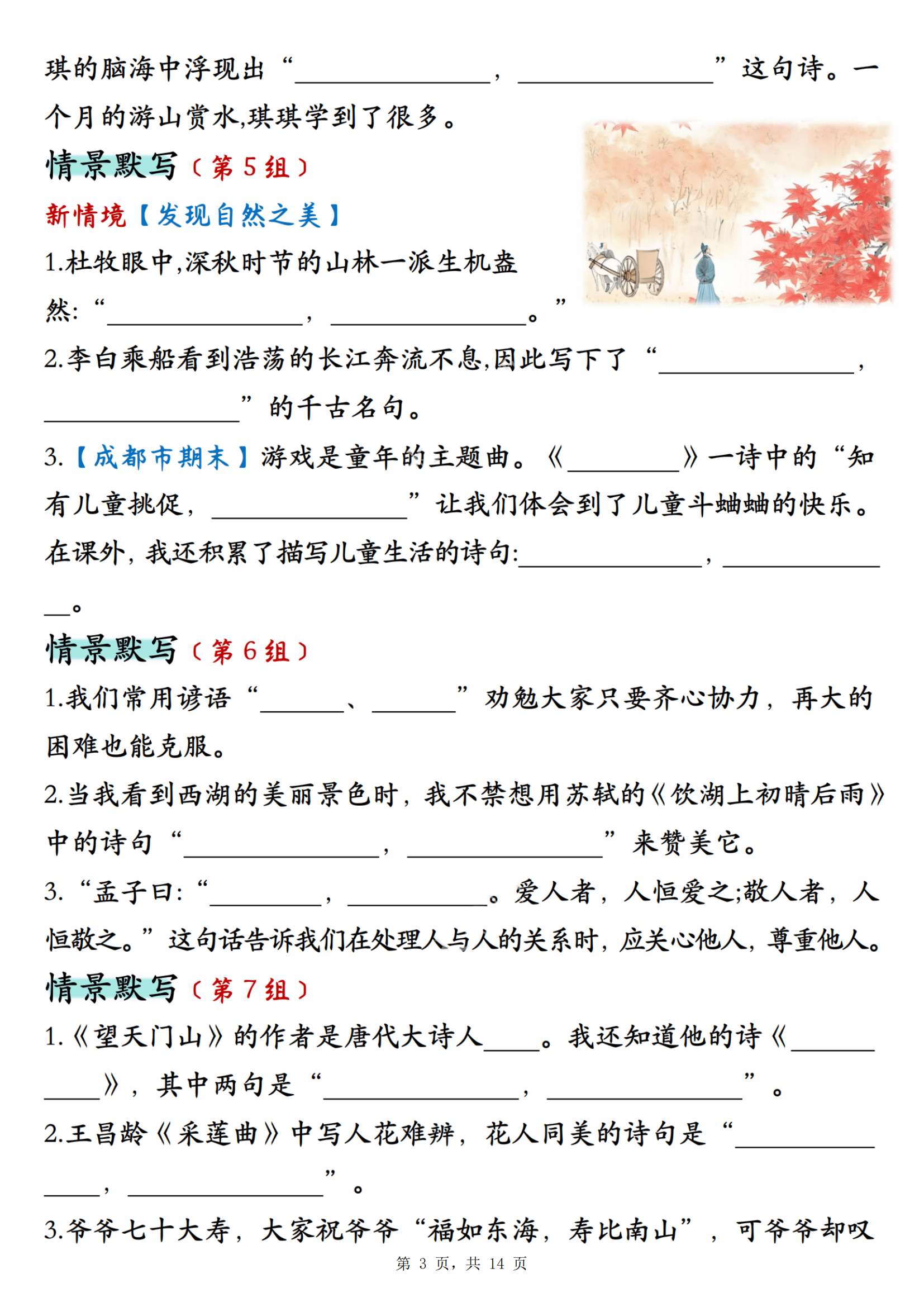 小学语文古诗默写专项(75首) barry001 昨天 3 默认 中小学全科学习资料下载 立即领取 摘要: 小学生必背古诗75首新课标 可下载打印复习过关统编六年级下册“古诗词诵读”复习卡统编语文一年级下册第58单元 “地毯。... 小学生必背古诗75首新课标 可下载打印复习过关统编六年级下册“古诗词诵读”复习卡统编语文一年级下册第58单元 “地毯。 部编版36年级语文下册积累与运用资料汇总古诗资料1小学生必背古诗75首检测题,可下载电子版!2新课标小学生必背古诗75首3。 标签: 小学语文古诗默写专项(75首) 打赏 觉得文章有用就打赏一下文章作者 支付宝扫一扫打赏 微信扫一扫打赏 海报 阅读 QQ 分享 微博分享 微信分享 分享 上一篇 六年级比和比例专项训练(附解析) 下一篇高考思维导图教辅(《高考全科思维导图》) 六年级比和比例专项训练(附解析)上一篇 高考思维导图教辅(《高考全科思维导图》) 下一篇 相关推荐 小学语文古诗默写专项(75首) 三年级期末复习策略 2025-10-24 三年级英语听力测试卷(人教版)(三年级英语听力测试100篇可打印) 2025-10-23 北师大版四年级数学下册课件(PPT)(小学北师大版数学四年级下全册ppt百度文库) 2025-10-23 小学生戏剧表演剧本(童话) 2025-10-23 小升初数学模拟试卷(含答案)(小升初数学模拟试卷及答案可打印2024) 2025-10-23 三年级下数学小数初步认识练习(三年级下册数学小数点的初步认识题) 2025-10-23 六年级科学宇宙探索课件(六年级科学宇宙单元知识点) 2025-10-23 小学英语写作万能句型(书信/日记/看图写话) 2025-10-23 中小学全科学习资料下载 立即领取
