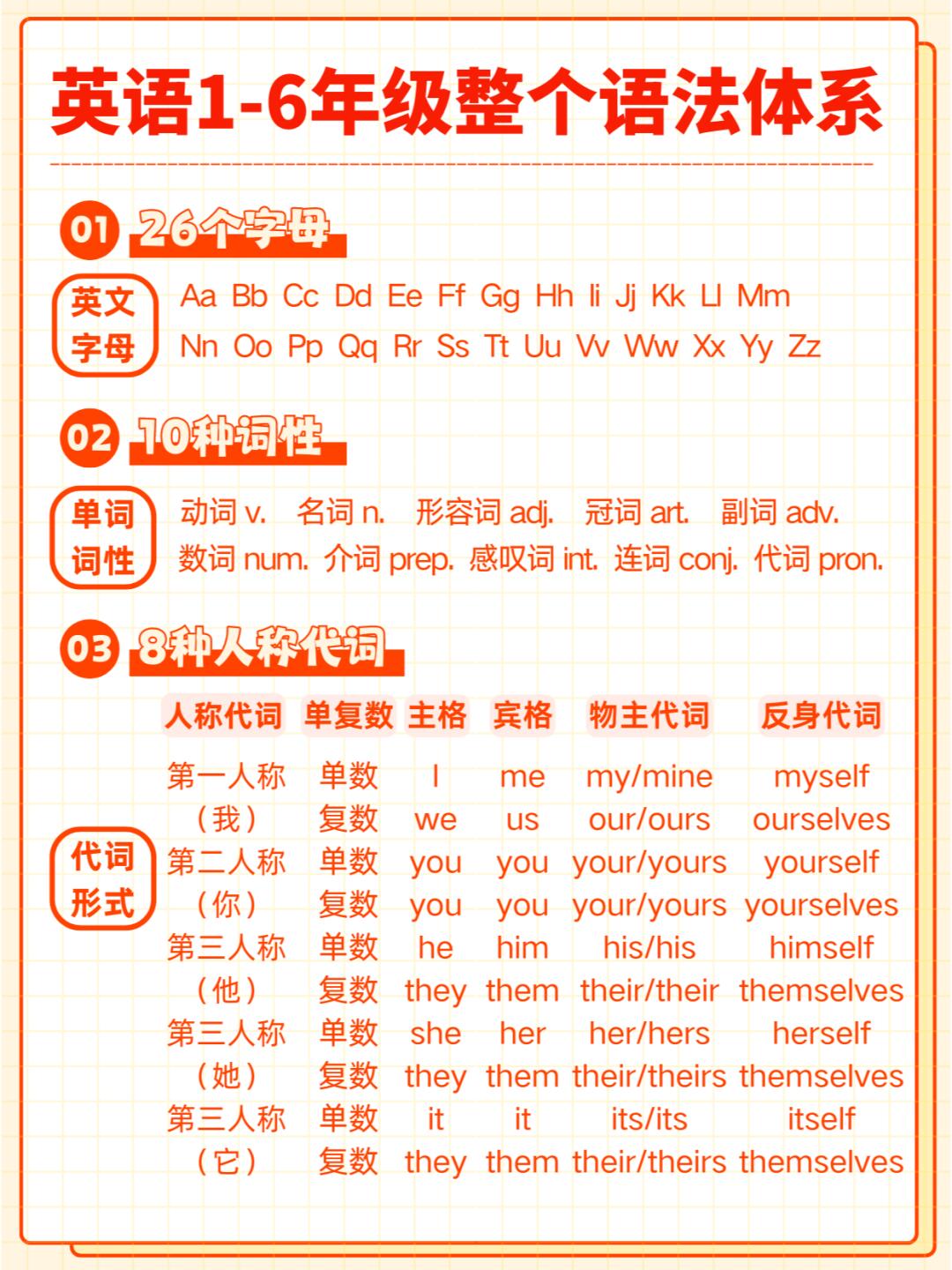 了初中三年英语所有语法,拒绝摆烂,无理由背会他它!快来学!强烈建议打印出来,每天早晚背一背!最好整理成卡片形式,贴。