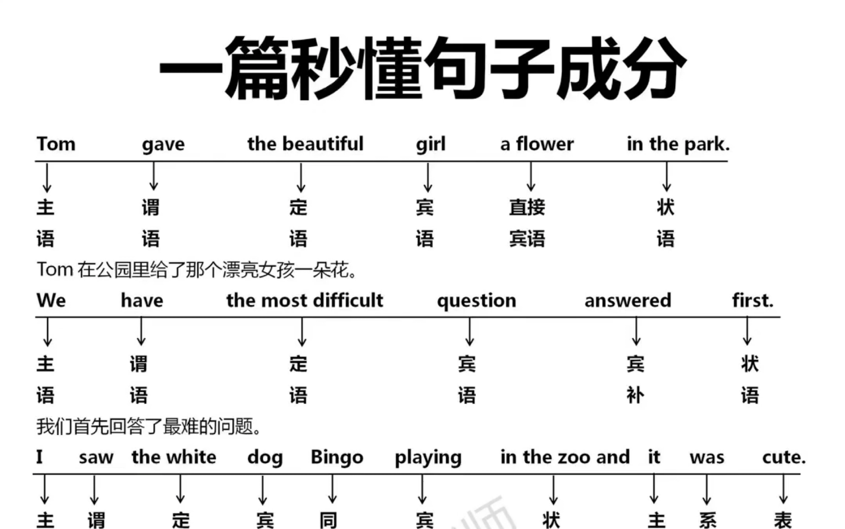 秒懂英语句子成分一张图搞定零基础自救必备 学会分析句子成分在阅读和写作中真的很重要先理清基本知识,在逐一吃透重难点,英语语法真的不难#。